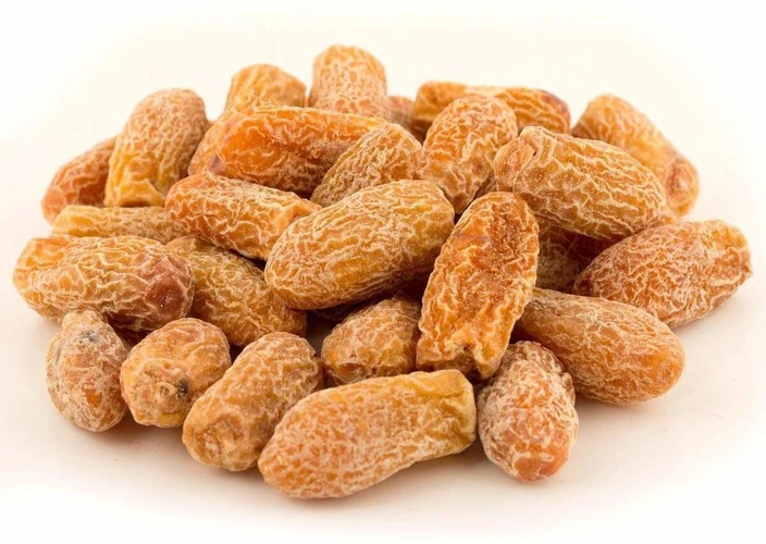 Dried date yellow is loaded with both insoluble and soluble fiber and is filling. They help regularize your bowel movements because of their laxative effect. The natural form of sugar – fructose and glucose present in dates are fairly easy to digest and provide instant energy whenever needed. Dried date yellow also contain loads of vitamins, minerals, iron, and potassium that aid in regulating blood pressure levels and cure anemia.